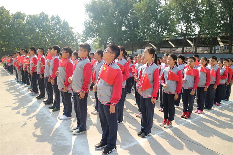 2019年9月30日,徐州市树恩中学复兴北路校区开展了庆祝新中国成立70周年经典诵读特殊升旗快闪活动。