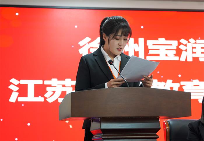 会上,董事局秘书长、徐州宝润实业上市集团办公室主任郝雪雪宣读集团相关通知、人事任命及决定。