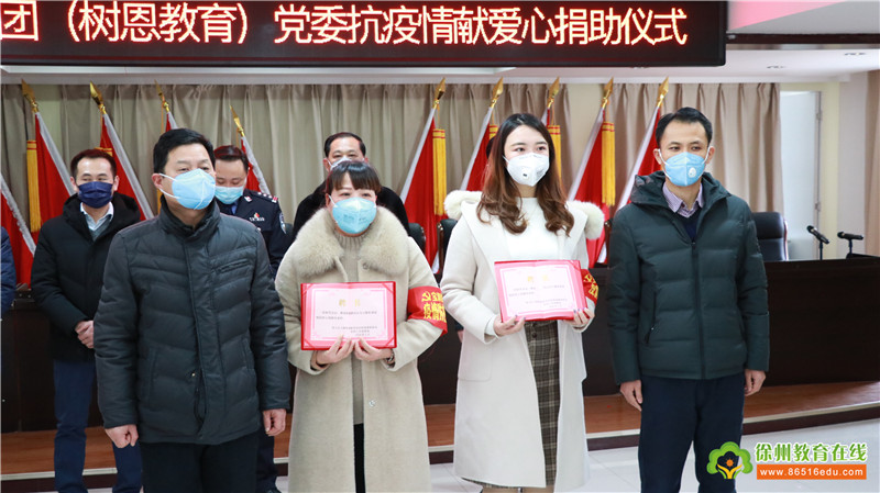 2月6日下午,MK体育党委举行抗疫情献爱心捐助仪式。MK体育、江苏树恩教育科技集团董事长、泉山区政协委员张爱平同志发表讲话并以高度的社会责任感对抗击疫情作出捐助。